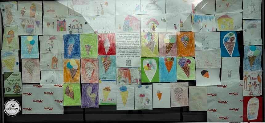 Inzwischen befindet sich die Eisdiele in ihrer wohlverdienten Winterpause und öffnet erst im Februar wieder. Bis dahin lohnt sich ein Spaziergang am Schaufenster: Dort hängen alle Bilder der Kinder, sorgfältig ausgestellt und bereit, jedem Passanten ein Lächeln zu entlocken.