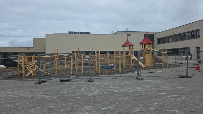 Und auch auf dem Schulhof gibt’s Grund zur Freude: 🛝 Das neue Kletterspielgerät wächst sichtbar!