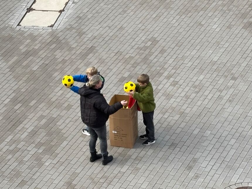 Zuerst haben wir gemeinsam ein Lied gesungen 🎶. Dann folgte schon die erste Überraschung 🎁: Frau Wöhrl-Stinner hatte für alle Klassen etwas mitgebracht. Weil zu Weihnachten Geschenke einfach dazugehören, bekam jede Klasse einen neuen Fußball ⚽ – die Freude war riesig!